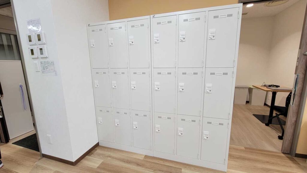 鍵付きのロッカーがあります。トレーニングの際にはお荷物をこちらのロッカーに入れられます。